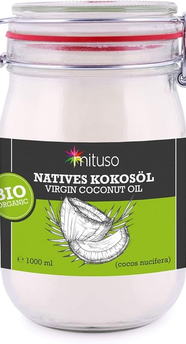 L'olio di cocco biologico Mituso si ottiene da noci di cocco coltivate biologicamente, che vengono lavorate nella prima spremitura a freddo, preservando i preziosi ingredienti e vitamine, nonché l'aroma e il gusto della noce di cocco.